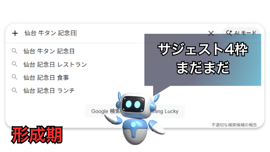 しかし、形成期のサジェスト枠を育てることで、ビッグワードへの接続確率を高めることは可能です。